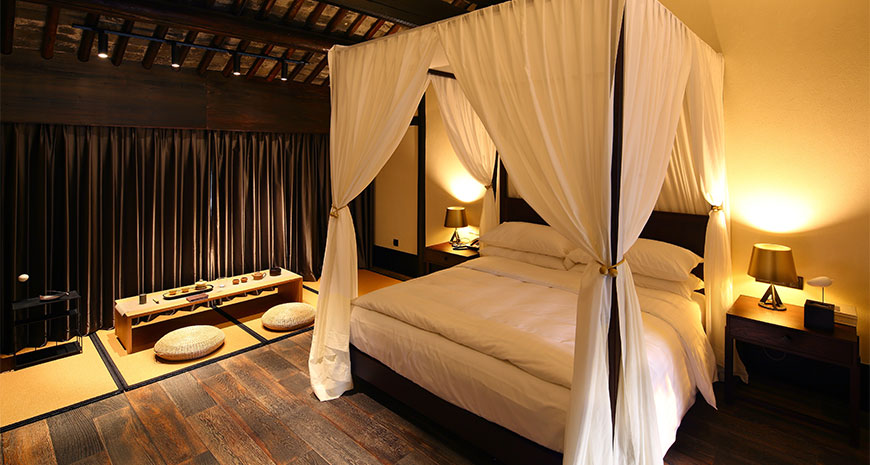 每間廂房室內設計寬敞明亮,更配有舒適的軟床,精致的榻榻米茶桌,貼心的衛(wèi)浴設備,多樣的睡枕選項